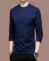 Men Basic Casual Solid Color Plus Size Long Sleeve Round Neck T-Shirt