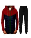 Men Casual Sports Color Matching Plus Size Long Sleeve Hoodies Trousers Sets