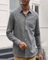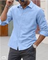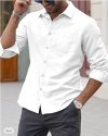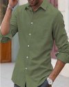 Men Fashion Casual Basic Solid Color Plus Size Long Sleeve Lapel Shirt