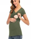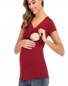 Summer Women Fashion Solid Color Deep V Cross Short Sleeve Breastfeeding Top